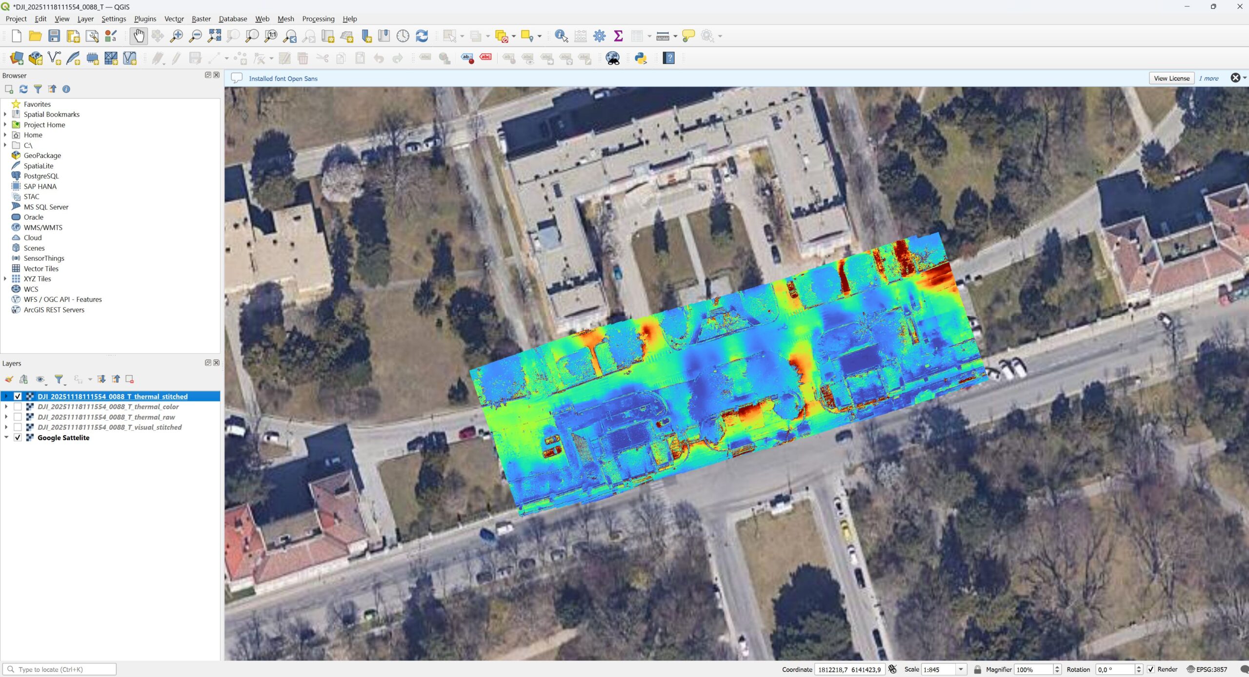 Eine Fernwärmeinspektion mittels Drohne wird durchgeführt, um Wärmeverluste, Leckagen und Defekte in einem Fernwärmenetz schnell und effizient zu erkennen. Diese Methode ist besonders in Städten oder Industriegebieten epfehlenswert einzusetzen, um Energieeffizienz zu optimieren und Ausfälle zu vermeiden.